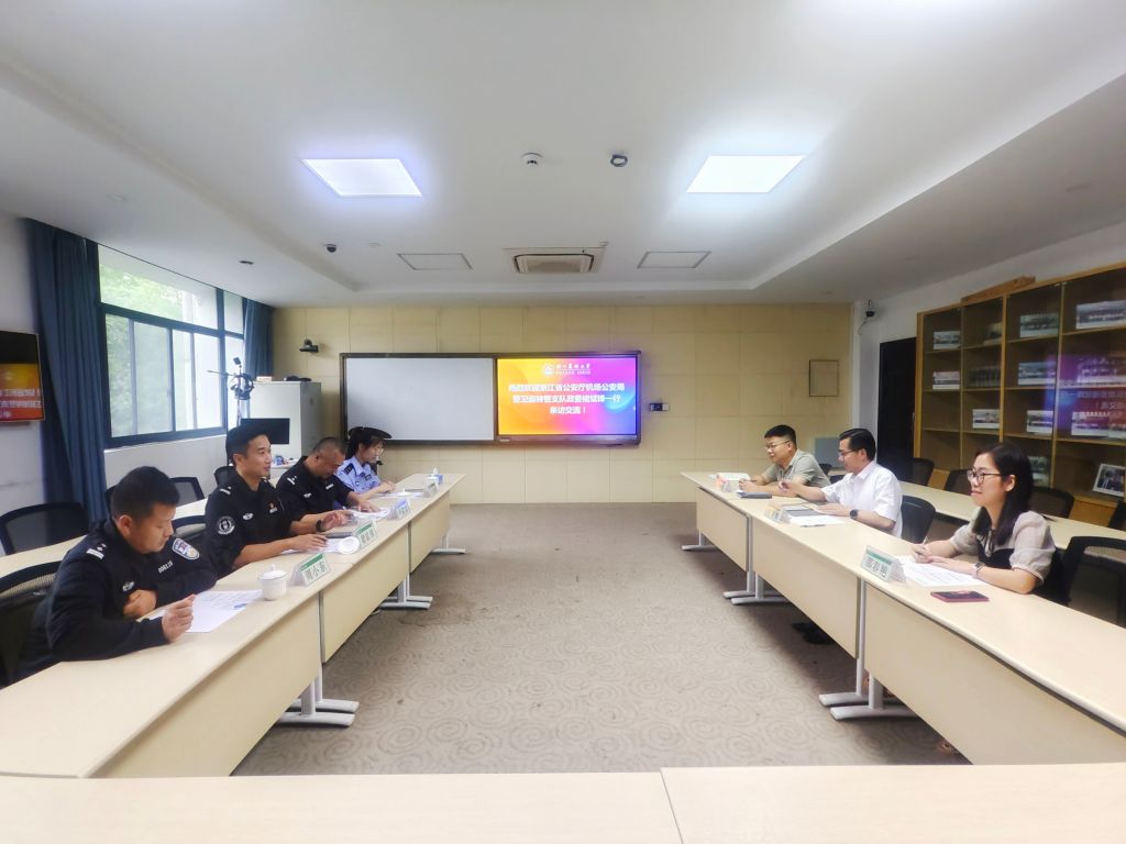 6月26日,浙江省公安廳機場公安局警衛巡特警支隊政委諸斌鋒一行來訪交流,校黨委委員、動科動醫學院院長宋厚輝,及學院相關負責人等參加交流會。