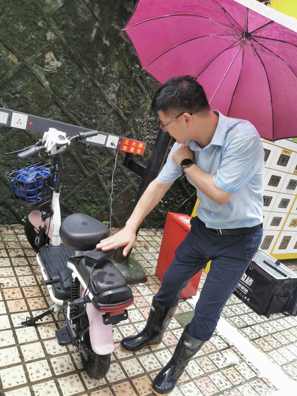 在支部書記和部門負責人的帶領下,巡查小組分4組深入校園各個區域,仔細巡查校園內排水設施及排水情況,護校河、東湖及牛頭山水庫的水位情況,檢查校園周邊山體、坡地、圍墻是否有松動、坍塌等安全隱患,巡查學生宿舍、教學樓、學院樓、圖書館及各實驗室大樓建筑物的周邊環境,檢查是否存在積水隱患以及建筑物的防水情況。在巡查過程中,發現有排水不暢的排水口,黨員干部立即徒手進行清理,對發現的問題和隱患,能整改的現場整改,無法立即整改的記錄在案,列入校園維修改造計劃。