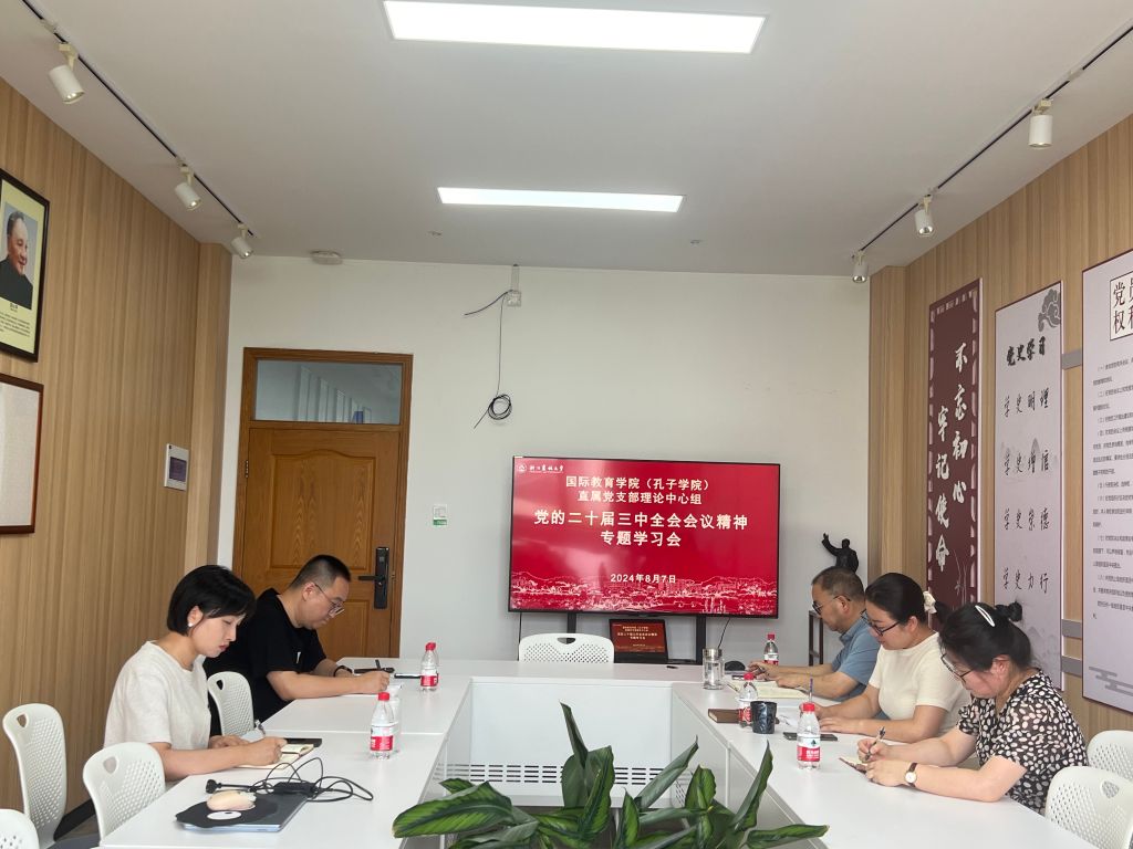 8月7日,國教學院直屬黨支部召開理論中心組專題學習會,傳達學習黨的二十屆三中全會精神。會議由支部書記趙有華主持,理論中心組全體成員參加。